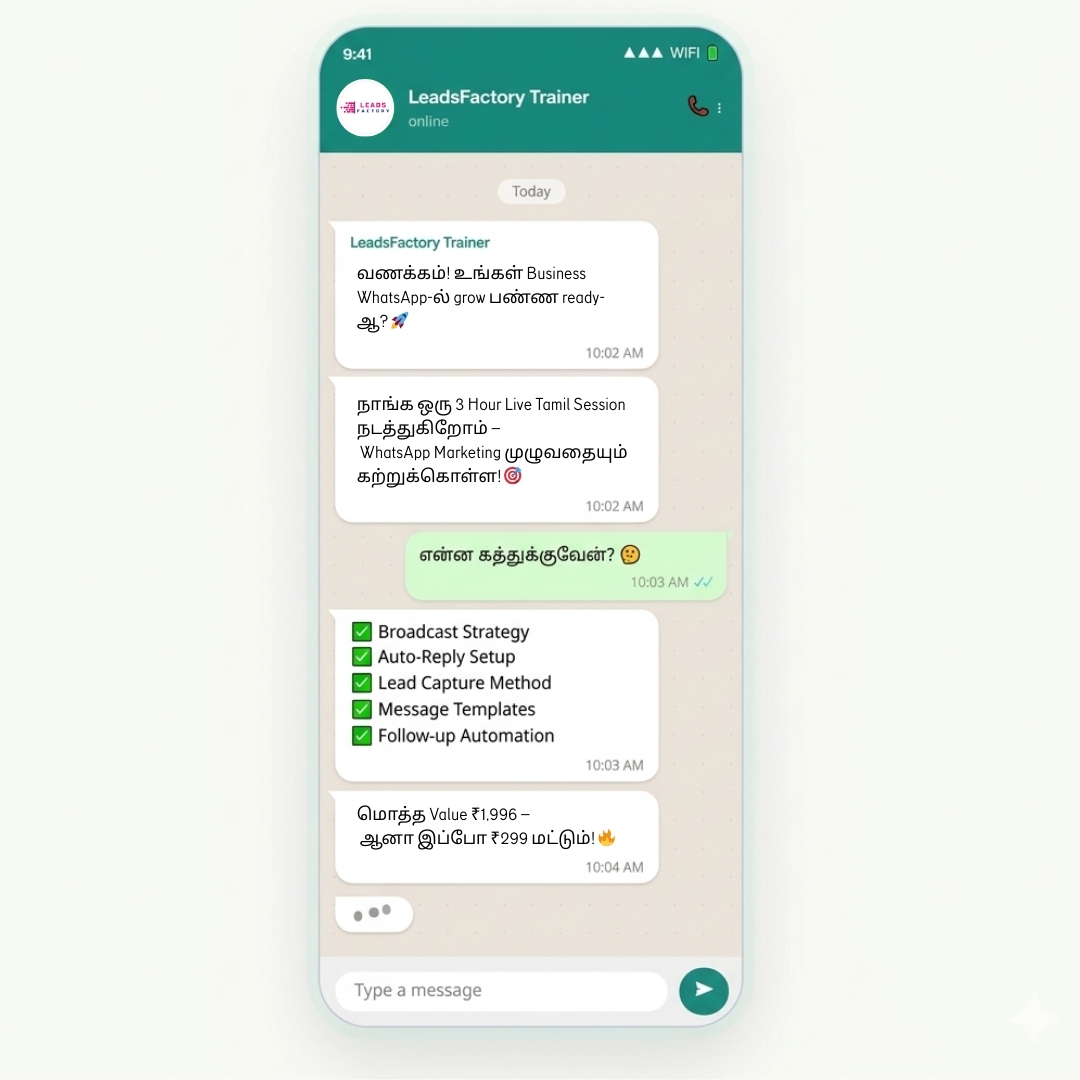 ✅ WhatsApp மட்டும் — one channel, full focus, proven results